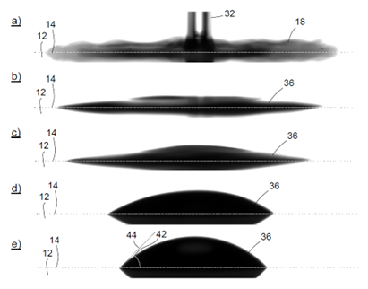 The method builds upon the existing "liquid-needle method" used to measure advancing CAs [2,3], wherein a thin liquid jet is meticulously controlled to deposit a droplet on the surface without imparting excess kinetic energy from the dosing process. In contrast to the liquid-needle method for advancing CA, our novel method for receding CA involves the liquid first spreading radially during dosing, forming a pancake-shaped film, and subsequently retracting to form a spherical cap-droplet shape, as illustrated in Figure 1. Consequently, we refer to such droplets as "stood-up drops" (SUD) [4].