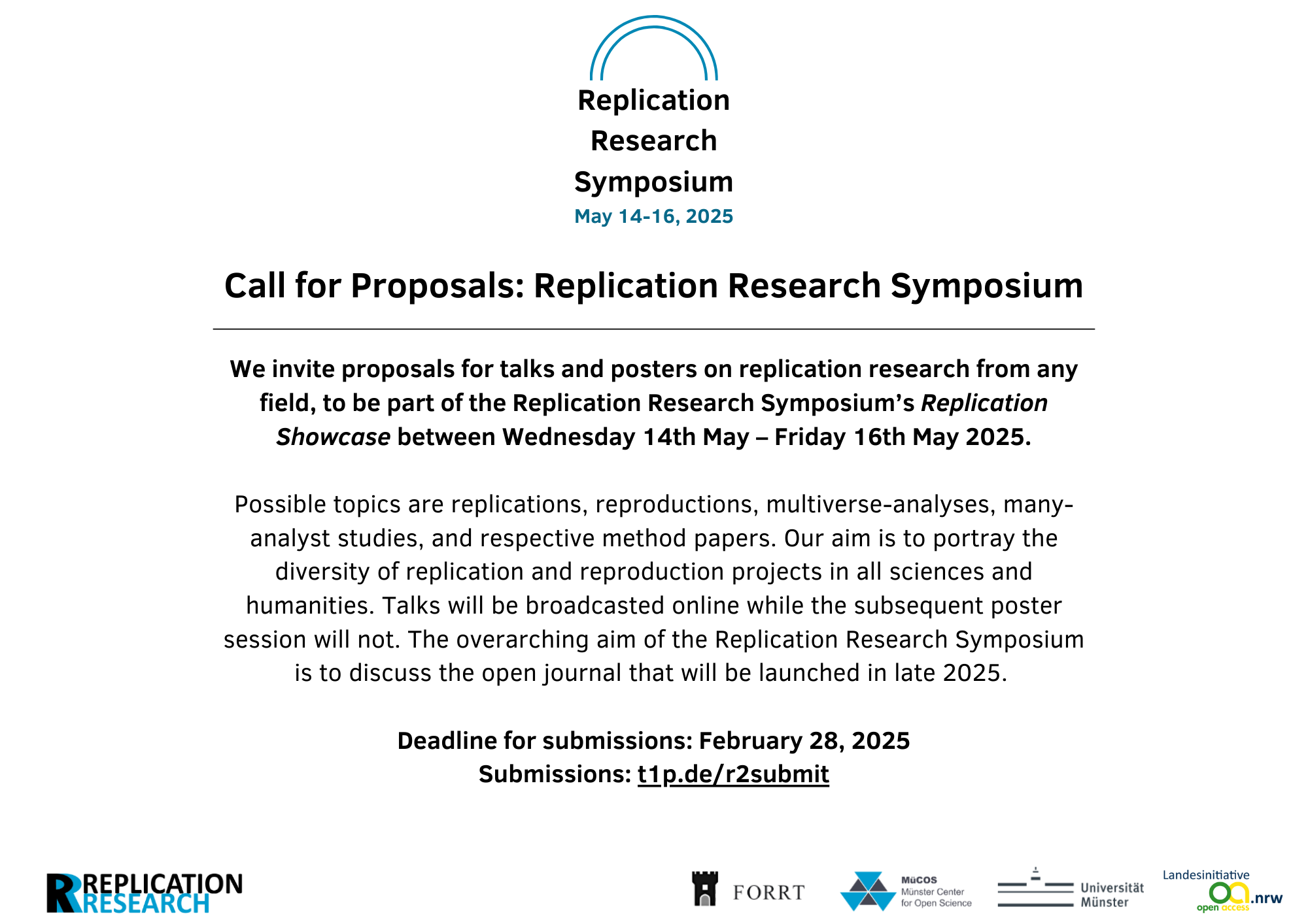 The Münster Center for Open Science and FORRT are hosting an international symposium on replication research. Across three days, participants and experts from different areas discuss why and how replication and reproduction studies should be conducted and published in the social, cognitive, and behavioral sciences. The symposium will shape and define the scope of the interdisciplinary journal Replication Research, which will launch in late 2025. Check out the Call for Proposals and submit abstracts until March 23.